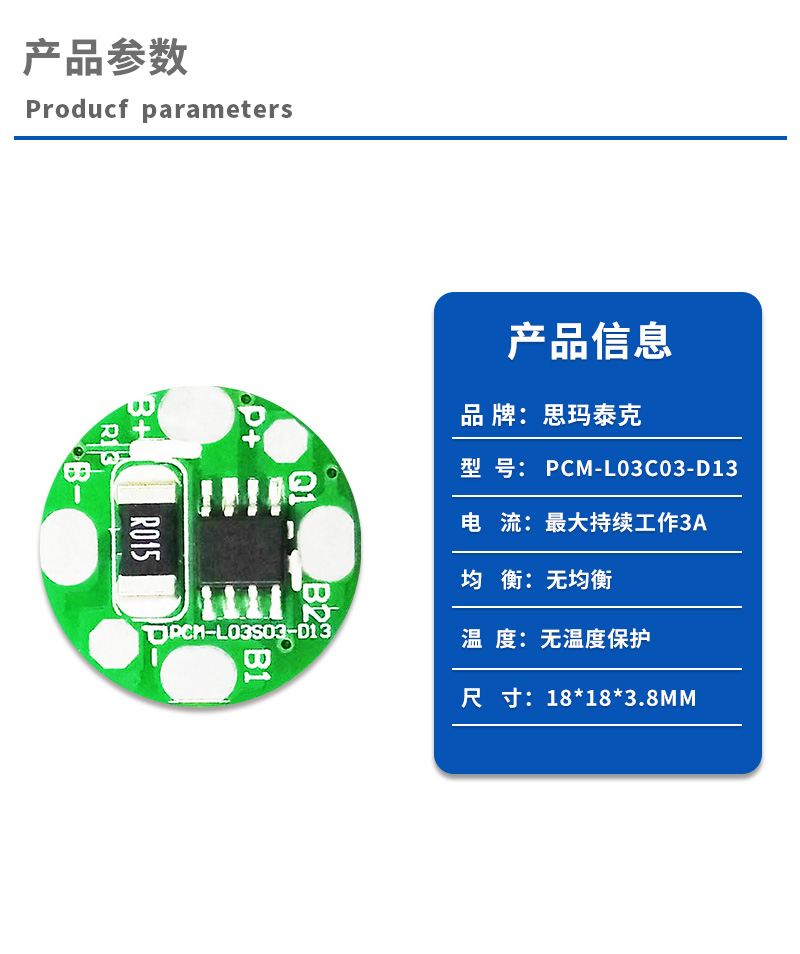PCM-L03C03-D13保护板是专门针对锂离子电池组设计的保护管理系统;